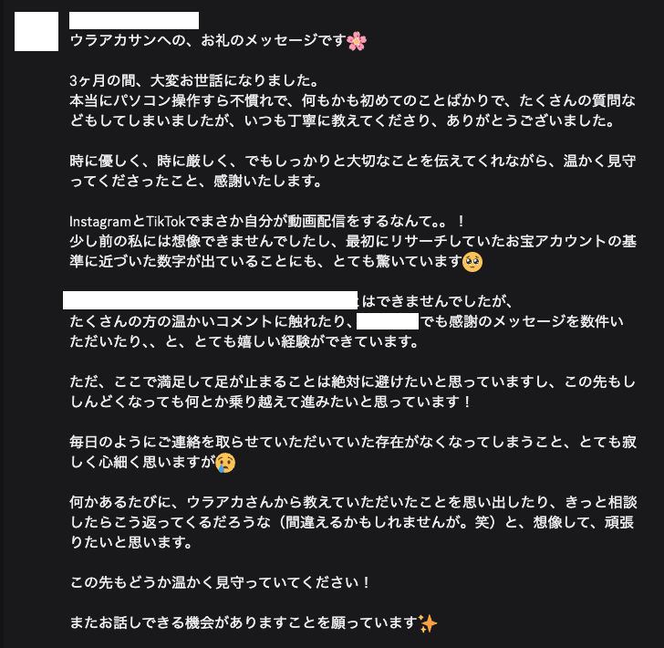 SNS投稿歴ゼロの主婦の方から頂いたメッセージ
